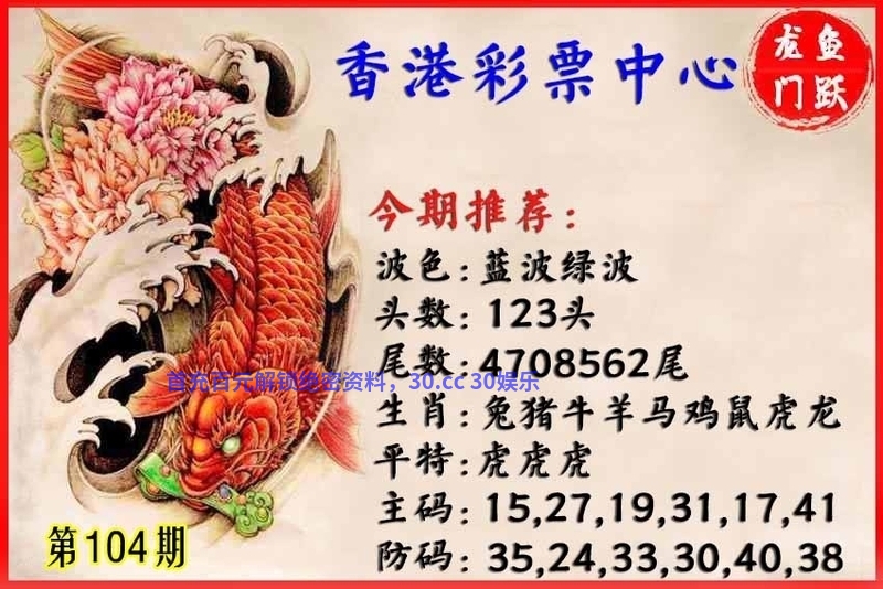 104期:黑白两肖→白肖+羊兔←开:狗32准 |